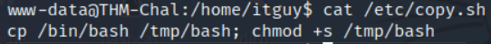 Use ‘cat /etc/copy.sh’. When we ‘cat’ a script it will execute the commands in the script.