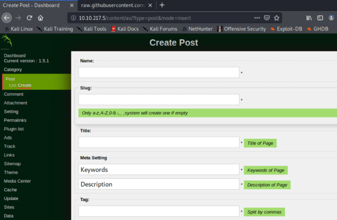 We are in !! Now what do we have to do? First just look around the website to find anywhere we can upload a script. I have found a couple of pages where we can .g. creating a new post or in plugin list page.