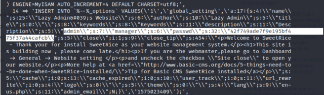 We can use ‘cat’ to inspect the backup file. Perhaps something is there for us to find. Keep your eyes peeled. Start analysing it from the top to bottom.