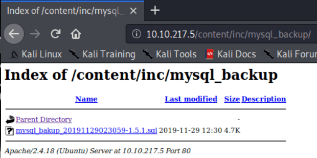 Lovely. We have a mysql backup file. That could be helpful for us. Let’s download that to our system.