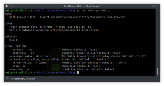 [hack-browser-data -b chrome -f json -dir results -cc]