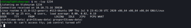 3. Simultaneously open a new terminal and listen to the port 1234 using Netcat.