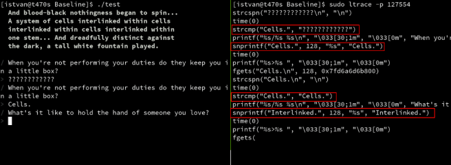 Dynamic analysis with ltrace: