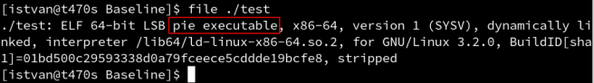 Confirming that the binary is a PIE executable: