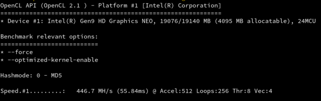 This means <2.24 secs for 1.000.000.000 MD5 hashes (we are in the 5 secs timeframe 😉 ). But this method requires some modification to the optimized MD5 code, because the one in our binary is not standard MD5.
