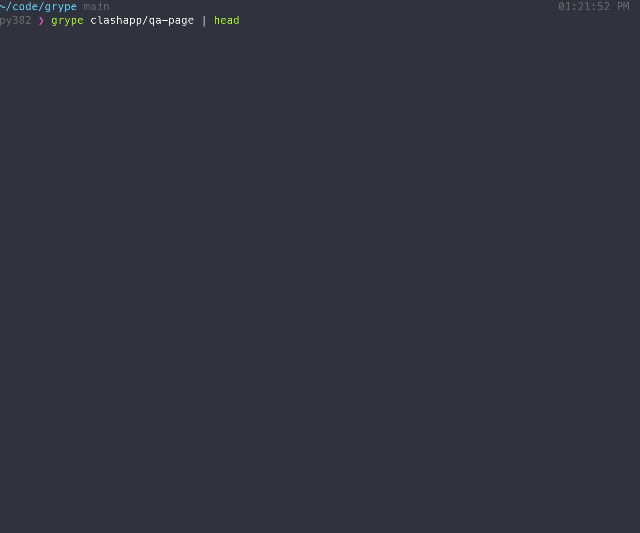 Install the binary, and make sure that grype is available in your path. To scan for vulnerabilities in an image: