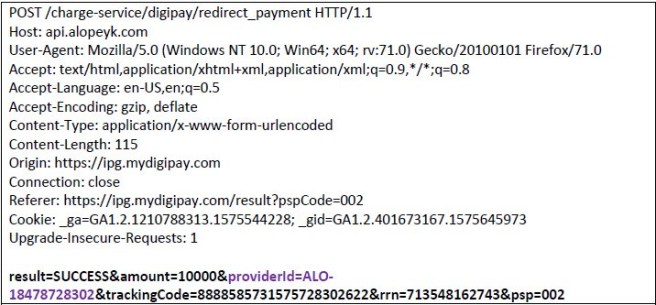 The security problem of this issue is that the attacker creates two requests. One request is a transaction in the amount of 20,000,000 and drops it. The Transaction ID of this record is copied. Then another transaction is created with the amount of 10,000 which is sent to the IPG and is paid. When this request is returning from the IPG to the website, the Transaction ID of this request is replaced by the Transaction ID of the dropped request.