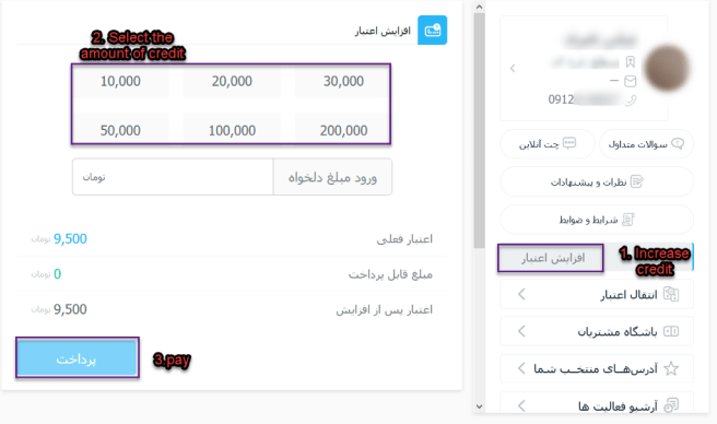 Next, I try to increase my account balance. In figure 3, you see steps of increasing account balance.