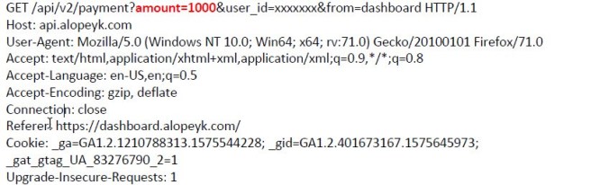 In the next step, I select 10,000 amounts and click on payment button. The first request is as following: