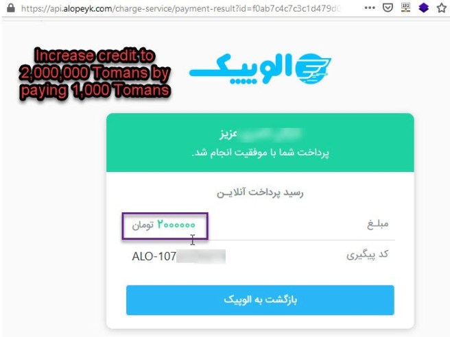 Due to not checking the amount value in the background of the transaction, it is recognized as successful and the attacker can charge his account by paying 10,000 in the amount of 20,000,000.