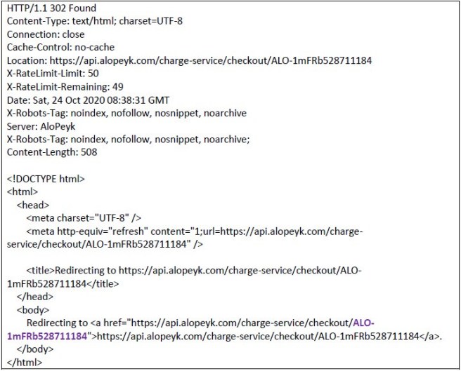 Ok. I keep in mind the ALO value of the second response and I keep going the payment process with the first request and 10,000 amounts. Then It redirects me to the payment gateway page, and I pay the amount. The request is:
