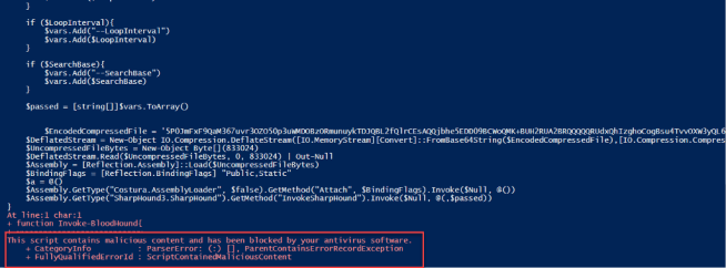 When you run the SharpHound.ps1 directly in PowerShell, the latest version of AMSI prevents it from running: