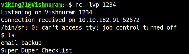 8. Simultaneously we have to listen through Netcat in one more terminal.