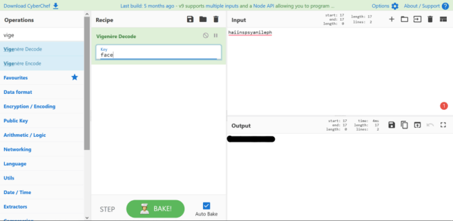 11. The encrypted message can be decoded in CyberChef through Vignenere Decode. The key is ‘face’ because, in that email, it was highlighted. After cracking, we will get the password for root.